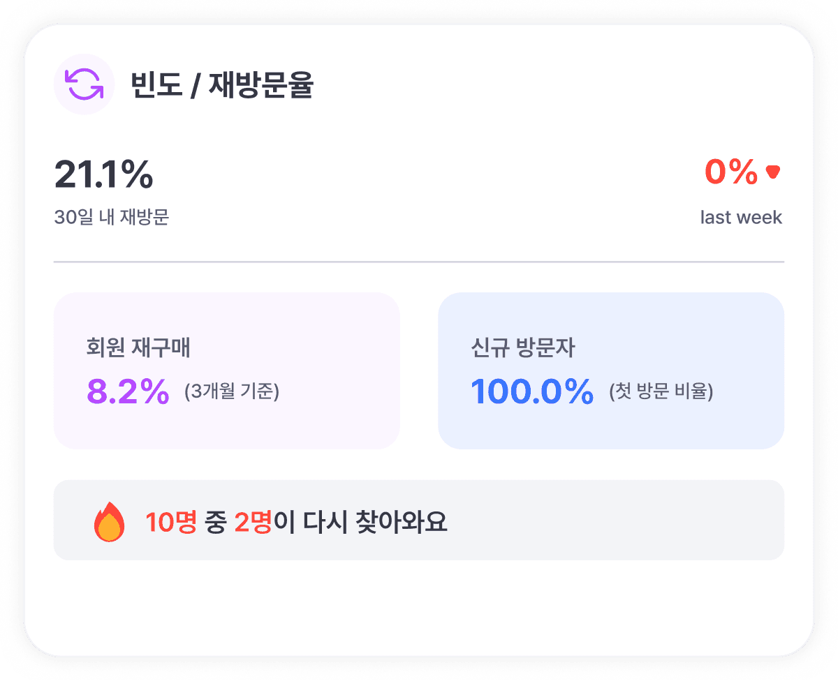 외부 연동 툴 없이도 자사몰 데이터를 실시간으로 분석 가능해요.