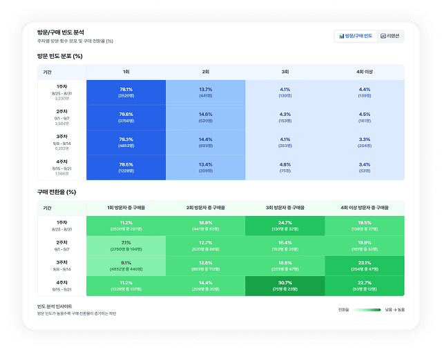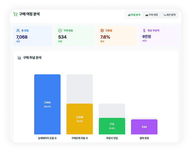 고객 여정부터 성과 지표까지 한 번에 분석해요.
